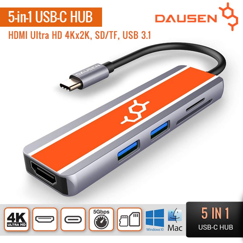DAUSEN 5-in-1 USB-C Hub HDMI Ultra HD 4K, SD/TF, USB3.1