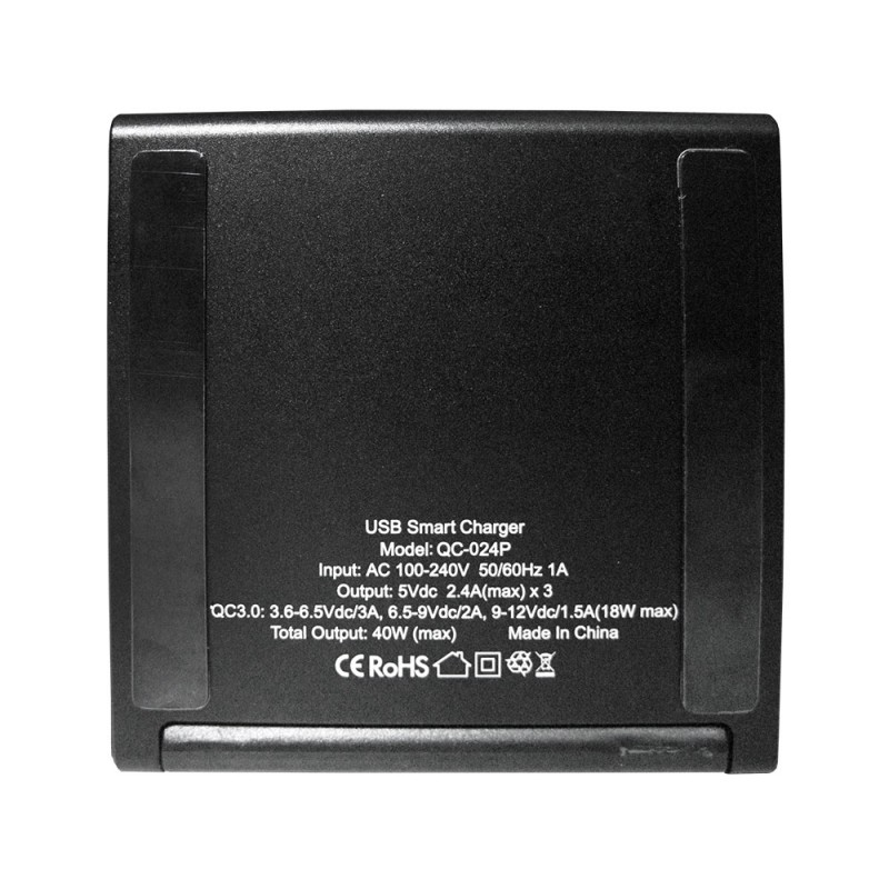 OptimuZ QC-024P 4 Ports Quick Charge 3.0 Universal Smart Charger 40W with Cover - Black