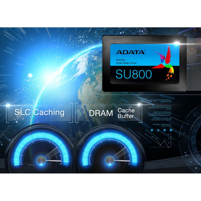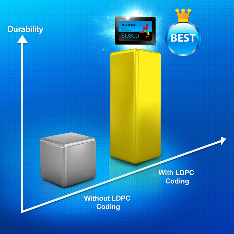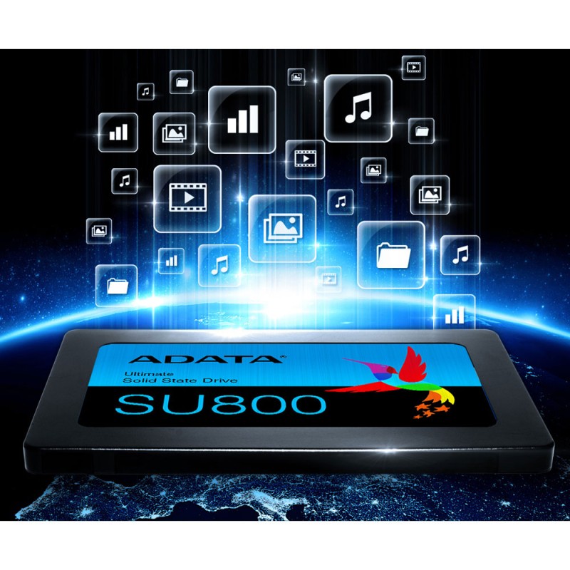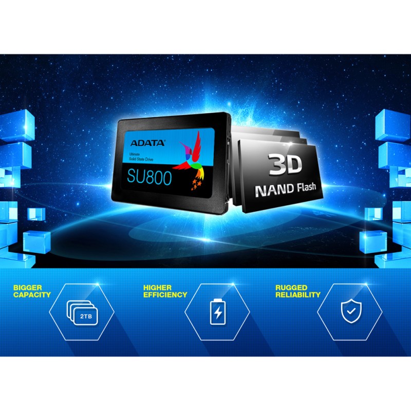 Solid State Drive SU800 Ultimate dibangun dengan 3D NAND Flash yang memberikan densiti, efisiensi, dan keandalan untuk penyimpanan yang lebih tinggi daripada NAND 2D tradisional. Dilengkapi fitur intelligent SLC caching dan DRAM cache buffer untuk meningkatkan kinerja read / write yang lebih baik. Selain itu memiliki fitur LDPC ECC dan teknologi high TBW (total bytes written) dan DEVSLP (Device Sleep), SU800 Ultimate mudah upgrade pada Notebook/Laptop dan PC desktop dengan stabilitas super, daya tahan, dan efisiensi daya listrik. Selain itu, pengguna dapat men-download software ADATA in-house developed SSD Toolbox dan Migration Utility secara gratis untuk menikmati pengelolaan data dan migrasi yang mudah.