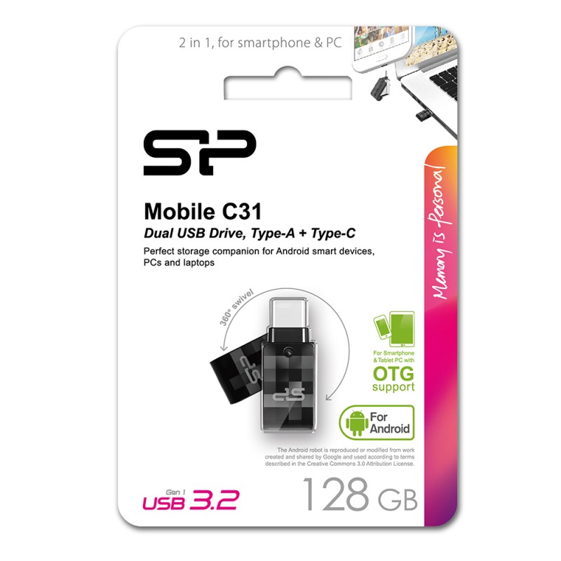 UFD Mobile C31 adalah Flashdisk Dua USB dari Silicon Power dengan interface USB3.2 Type-A dan Type-C yang support OTG untuk Android mobile,dan desain Swivel cap yang dapat diputar 360 derajat. Flashdisk ini memungkinkan pengguna untuk membawa data ke mana saja dengan penuh gaya dan kemudahan.
