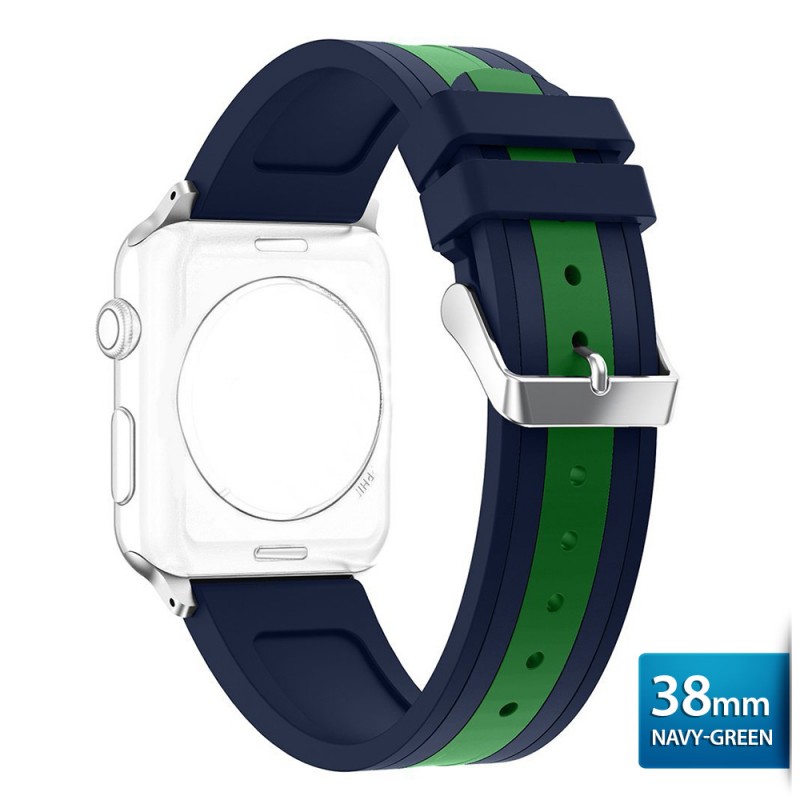 OptimuZ Sport Dual Tone Watch Band Strap Silicone for Apple Watch - 38mm Navy-green