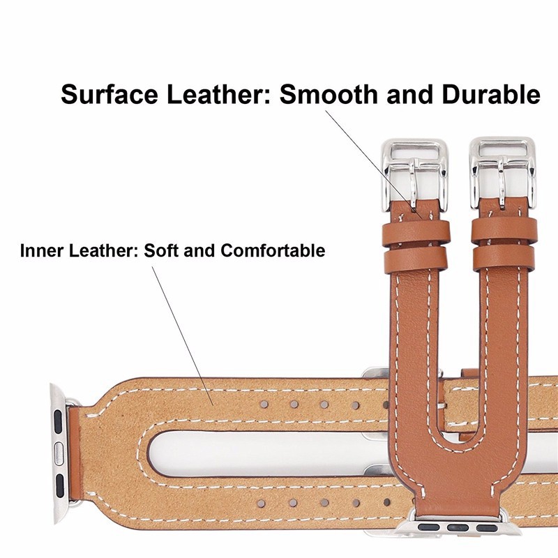 OptimuZ Premium Double Strap Leather watch band merupakan tali jam untuk Apple Watch dengan model dua tali jadi satu yang keren dan trendi. Terbuat dari bahan kulit asli yang berkualitas, lembut, dan kuat. Sangat cocok digunakan saat acara formal maupun santai.